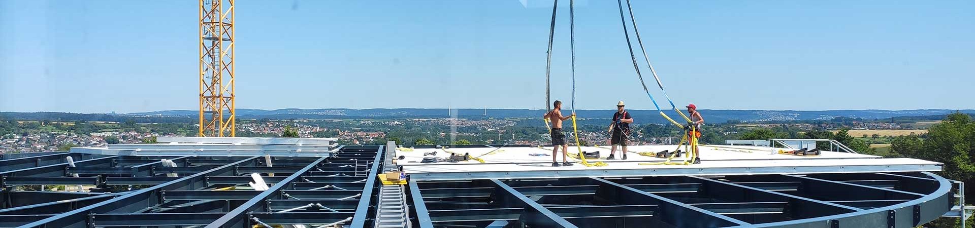 Beeindruckend sah es aus, als der neue Landeplatz selbst in riesigen Einzelteilen durch die Luft schwebte. Ein Kran hob die Teile der Aluminium-Plattform, aus der der Landeplatz gebaut wird, eines nach dem anderen an seinen Platz auf dem Dach der neuen ZNA. In die Aluminium-Plattform integriert sind unter anderem die Heizelemente, sodass die Plattform bei Bedarf gleichmäßig beheizt werden kann. Auch eine Löschanlage ist direkt verbaut.